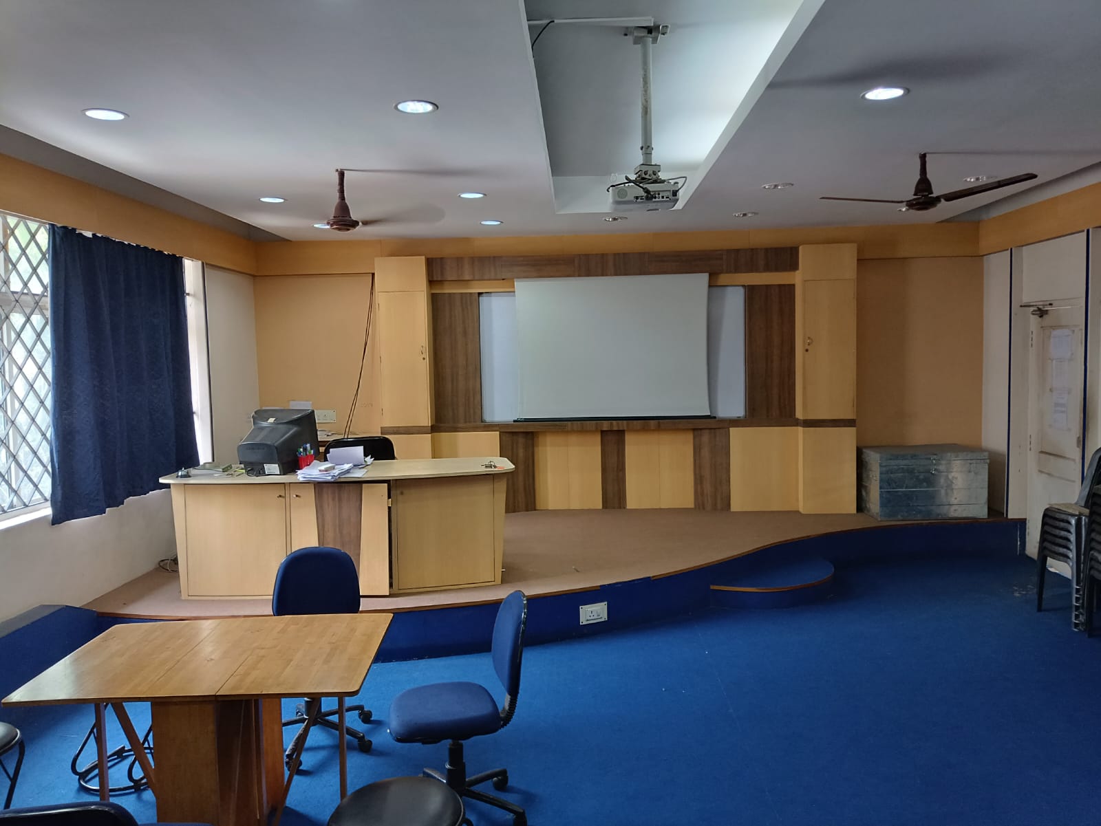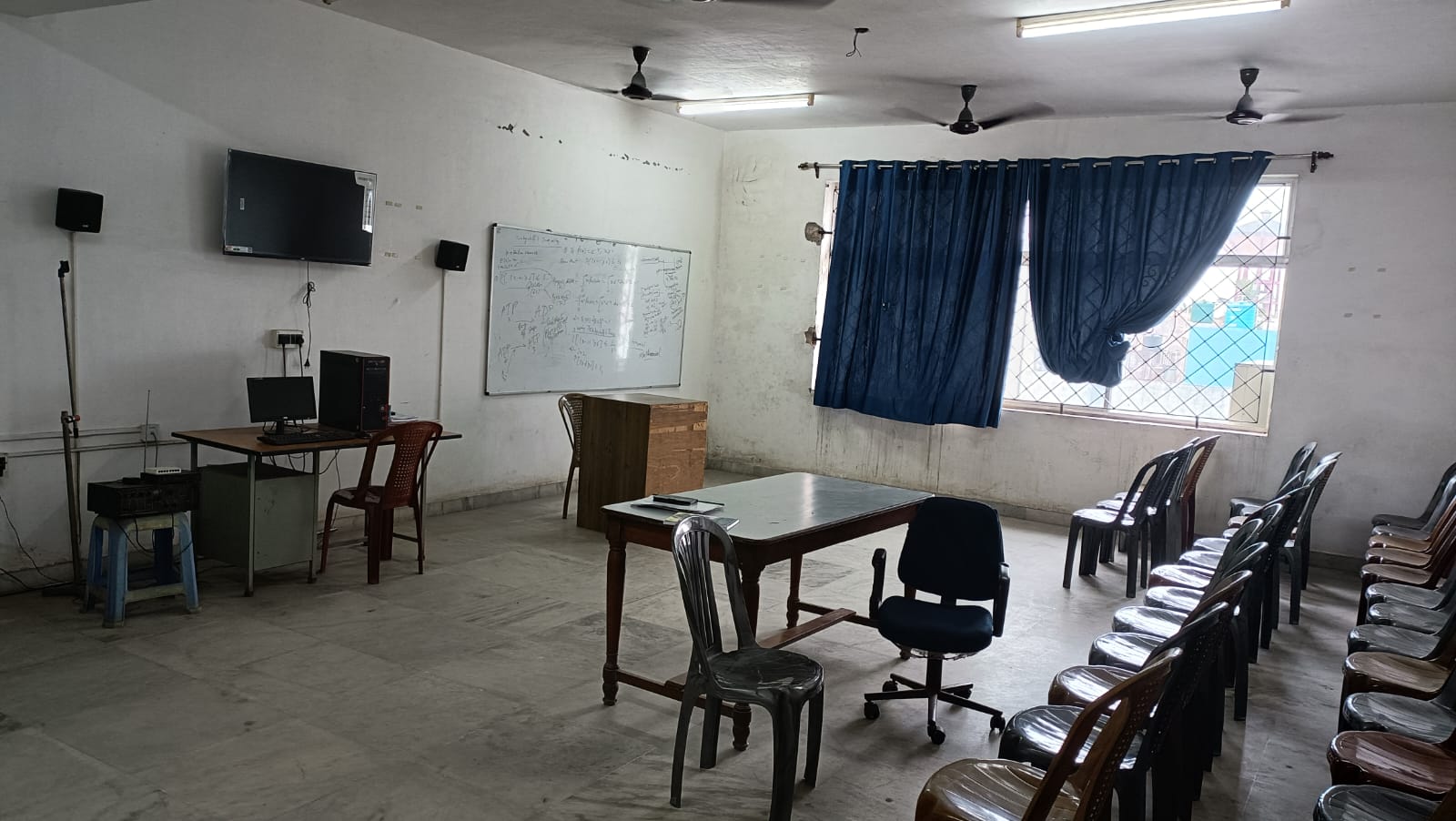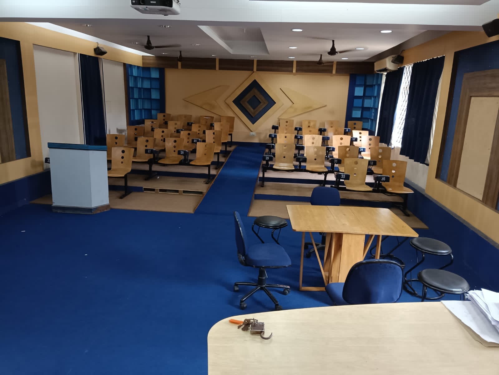 The language laboratory is situated at a very pivotal area of electrical building beside the dark room of physics laboratory. The laboratory is specious with ample light and air being ventilated through the wide window .The room has the capacity to seat 40 students together. The PC is placed on the table beside the white board attached on the wall close to the wide window. There is a television also connected with the pc which helps students in audio visual purpose. Its also used to support the power point presentation the learning process is designed by WBUT syllabus. A podium is placed in front of the white board for making speech or for conducting any event. Important belonging like buzzer ,microphone, stopwatch are kept in the drawer attached with the podium . All these necessities are required for organising public speaking as well as GD and debate. A large table is also kept in front of the PC table for organising GD.