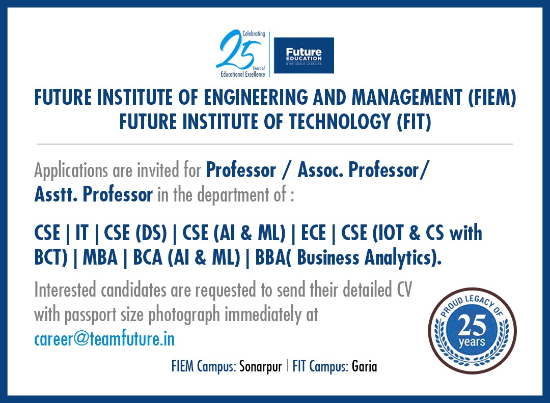 We invite zealous and proficient subject teachers, efficient administrators, staff members, technicians and distinguished academicians to build a modern technological knowledge hub in the top management colleges in Kolkata.